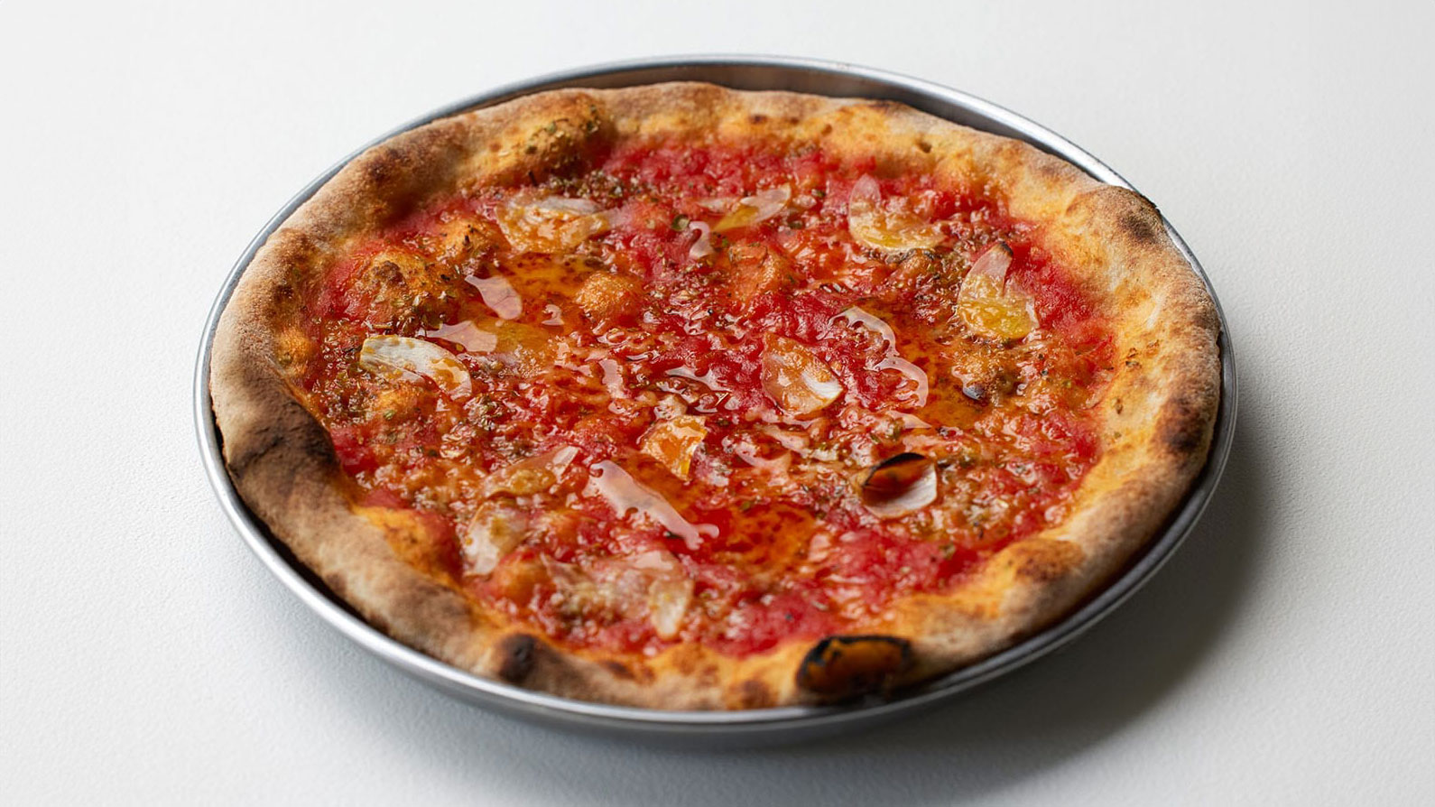 パスタをつくるのと同じ考え方でつくるピザ。油分のベストなバランスを極めたとろーんと繊細なトマトソースと吉田牧場のモッツァレラが、塩味を抑えたオリジナルのピザ生地と口の中で絡み合う。ソースだけでも生地だけでもおいしいピザは、クレイジーピザだけ。